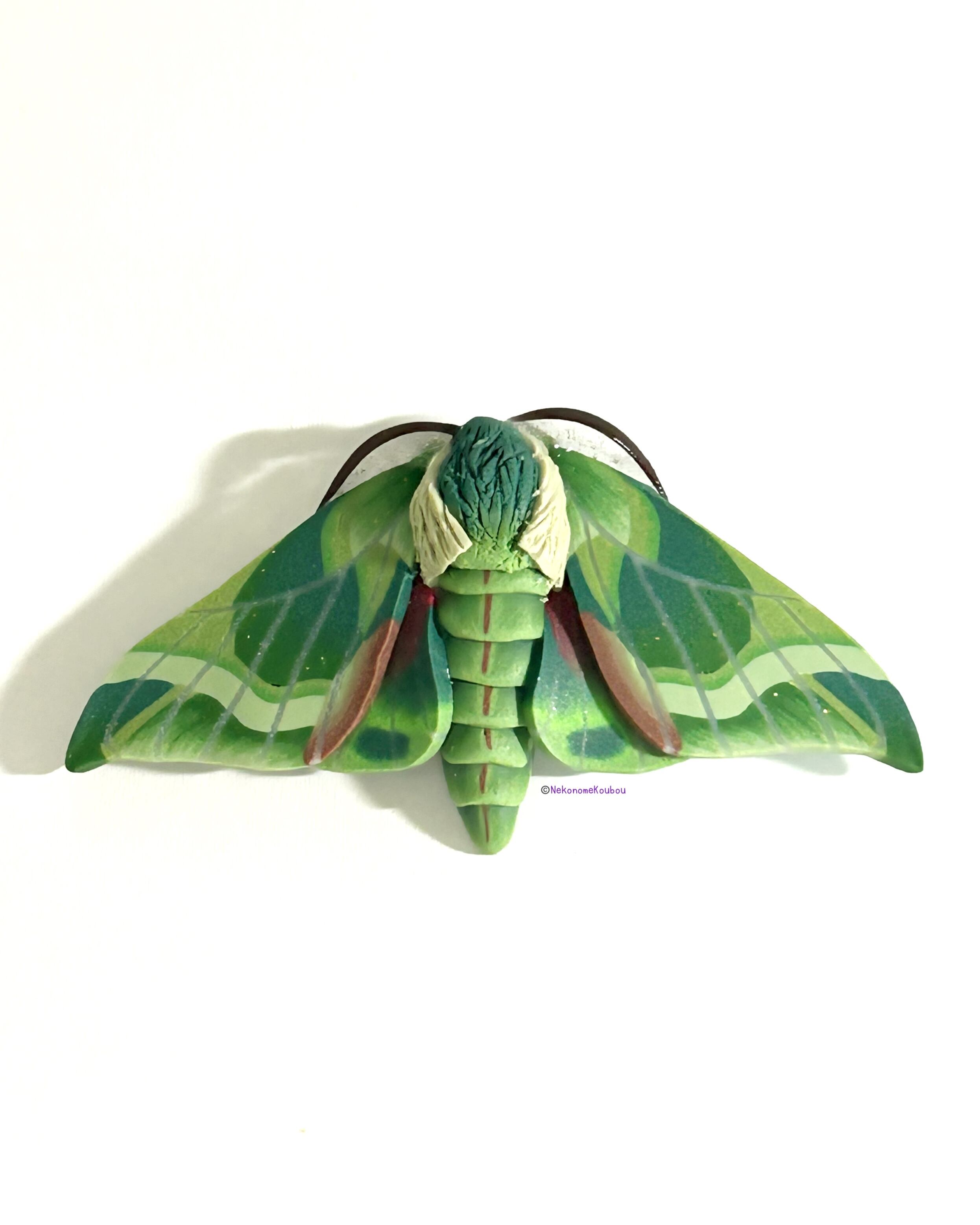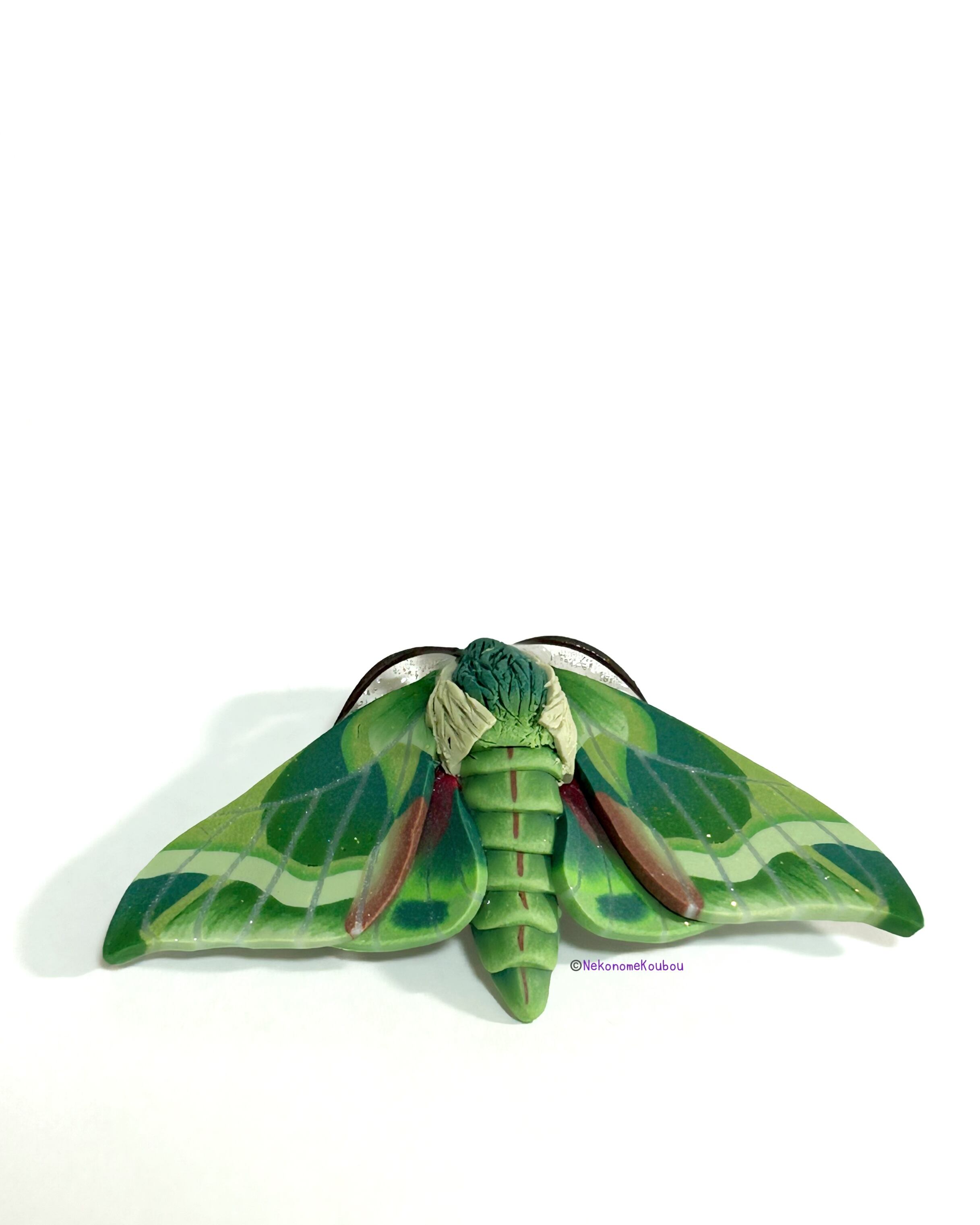 装着時になんらかのトラブルが起きても、ウンモンスズメ本体とブローチ金具が別離しないようコーティングの際に一体化しております。