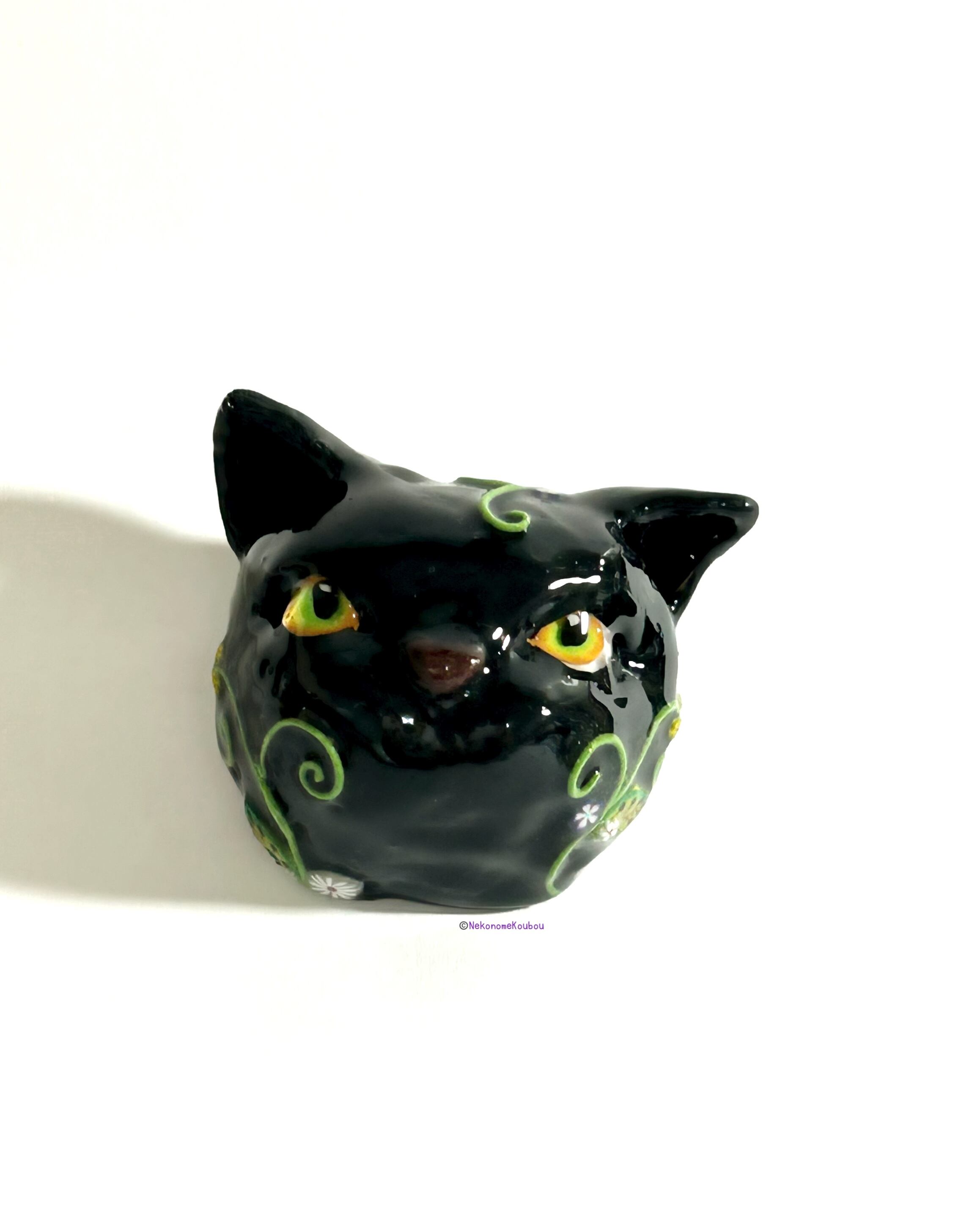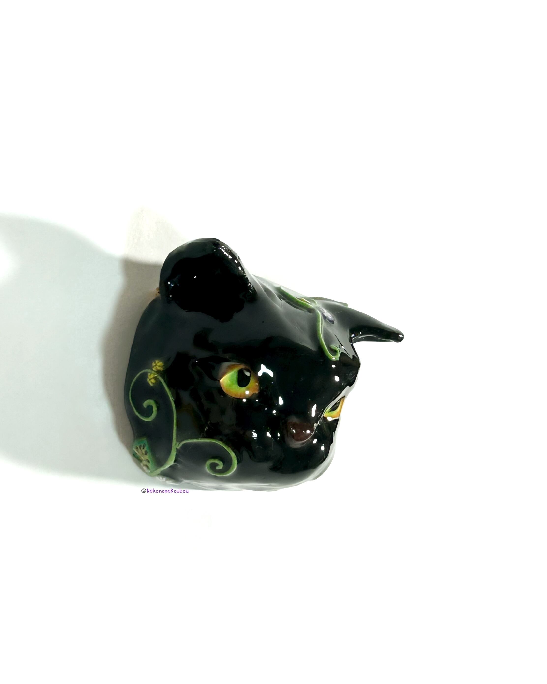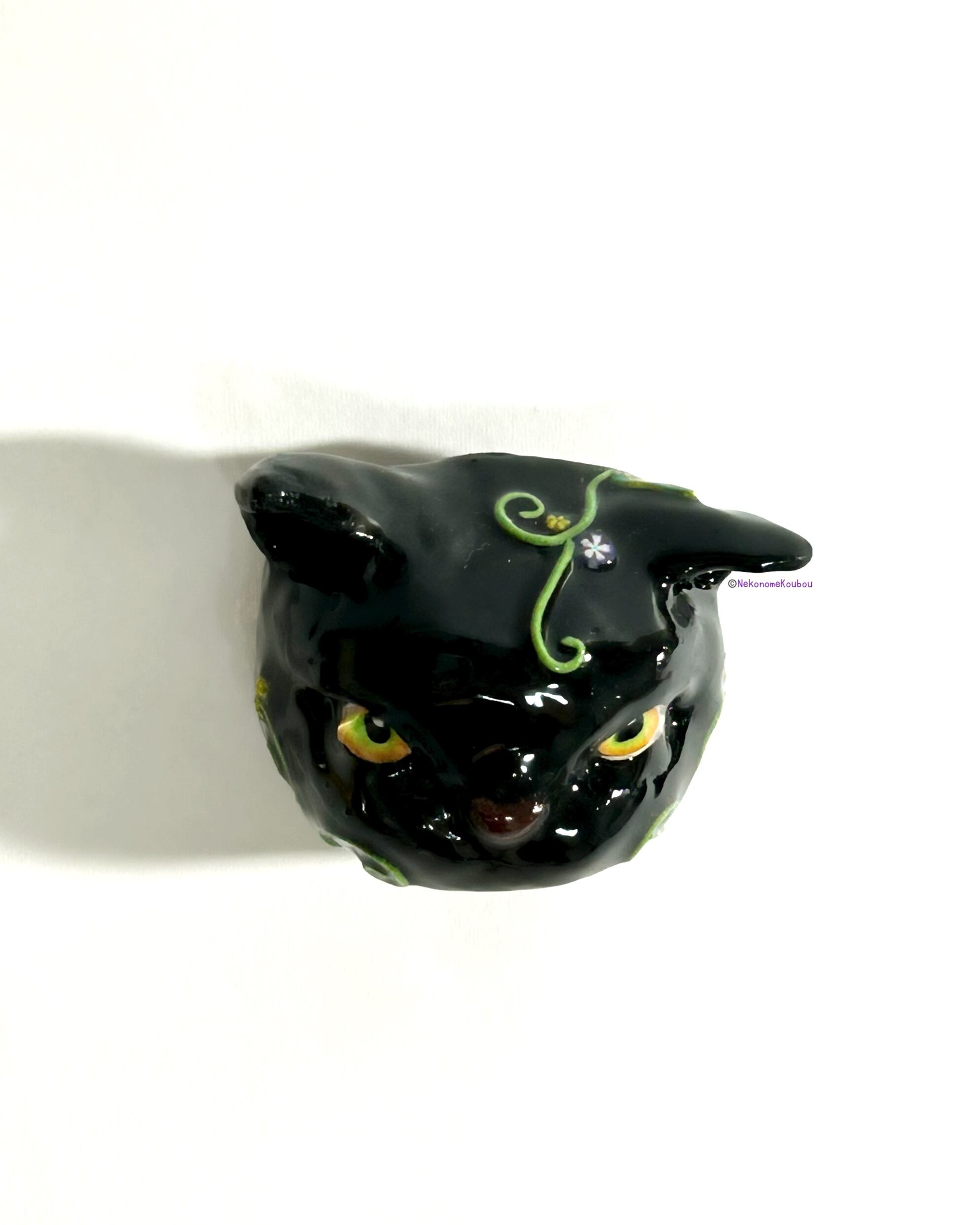 ニヒルな黒猫のフェイスブローチです。