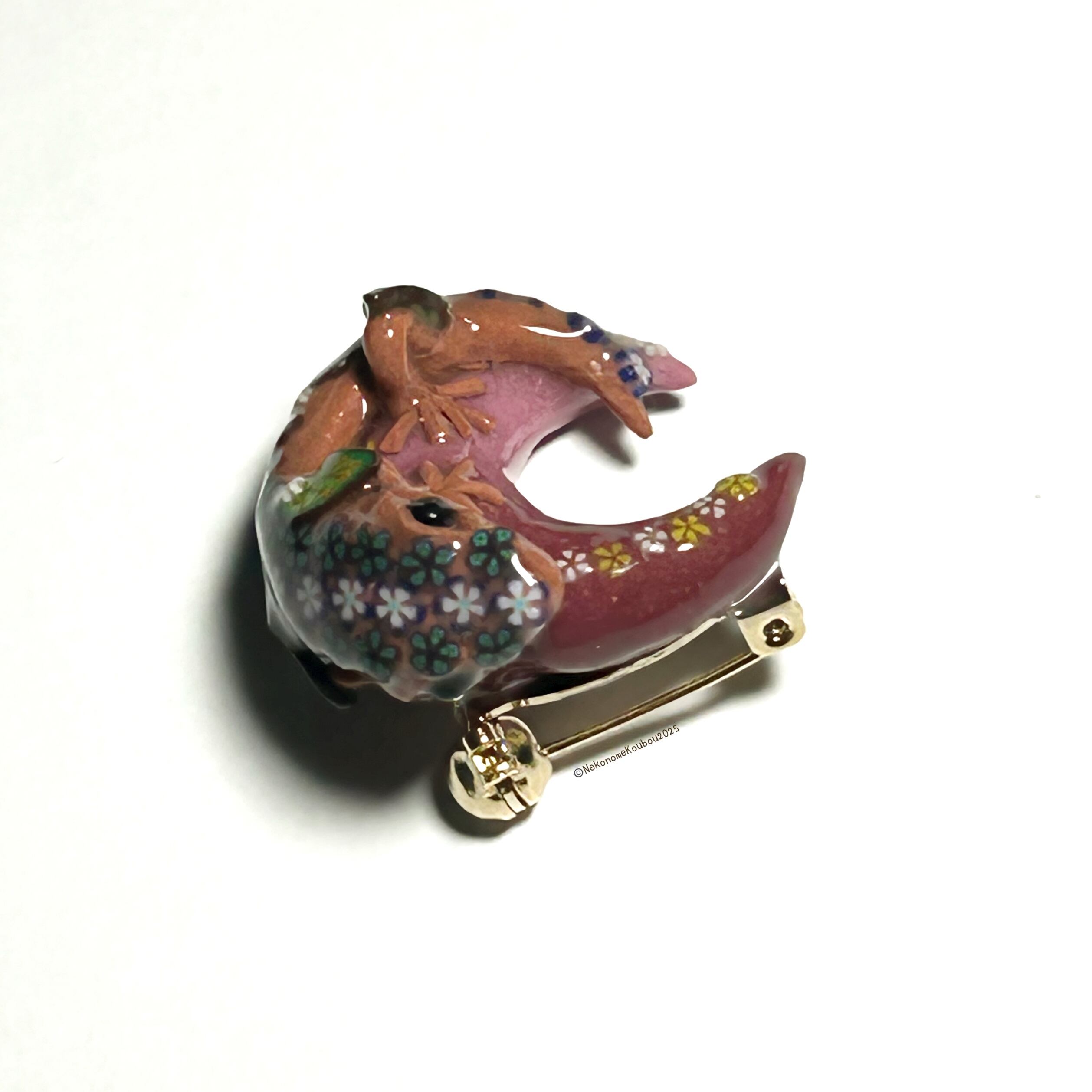 素材 : ドイツ製焼成タイプの樹脂、日本製透明樹脂、金メッキ製ブローチ金具